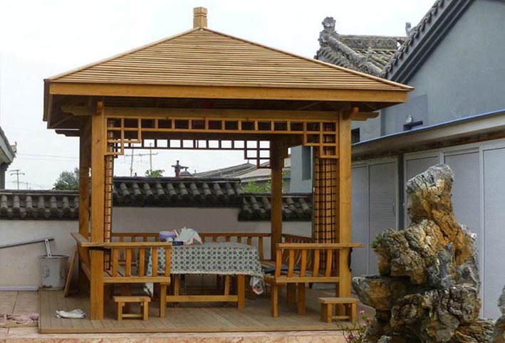 深圳防腐木涼亭是用防腐木組建而成,防腐木是將木材經(jīng)過特殊防腐處理后,具有防腐爛、防白蟻、防真菌的功效。專門用于戶外環(huán)境的露天木地板,并且可以直接用于與水體、土壤接觸的環(huán)境中,是戶外木地板、園林景觀地板、戶外木平臺、露臺地板、戶外木棧道及其他室外防腐木涼棚的首選材料。注意事項