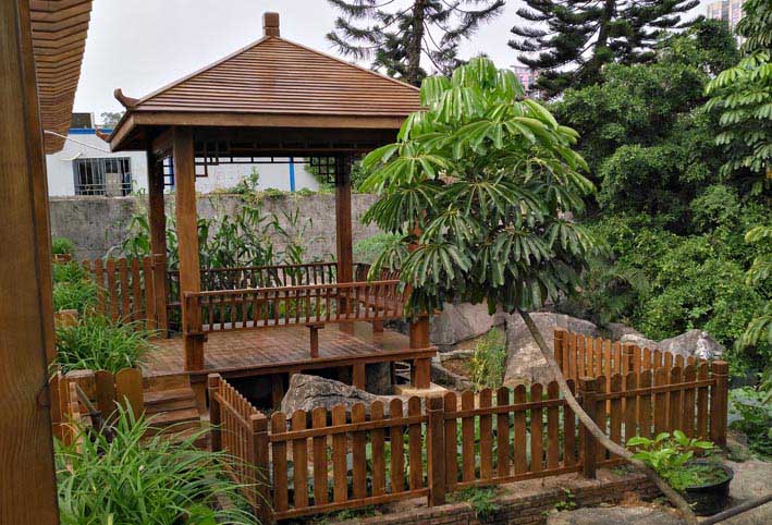 防腐木涼亭是用防腐木組建而成,它是園林景觀中的一部分,為我們的園林景觀增添了情趣,同時也為我們小憩觀景提供了便利。那么建造一個防腐木涼亭有哪些施工注意事項呢? 防腐木涼亭介紹 防腐木涼亭,其實用防腐木搭建而成的一種涼亭。因為涼亭采用的是防腐木這種獨特的木材,所以涼亭能夠長年不腐蝕,使用壽命特別的長久,因此在社會中非常的常見。現(xiàn)在我們?nèi)粘I钪性趫@林或者是其他地方看見的涼亭就是這種防腐木涼亭。其涼亭沖外觀上看來和一般的涼亭其實并沒有什么差別,而且因為防腐木獨特的木材紋理以及木色,涼亭看起來非常的古樸自然和舒適。